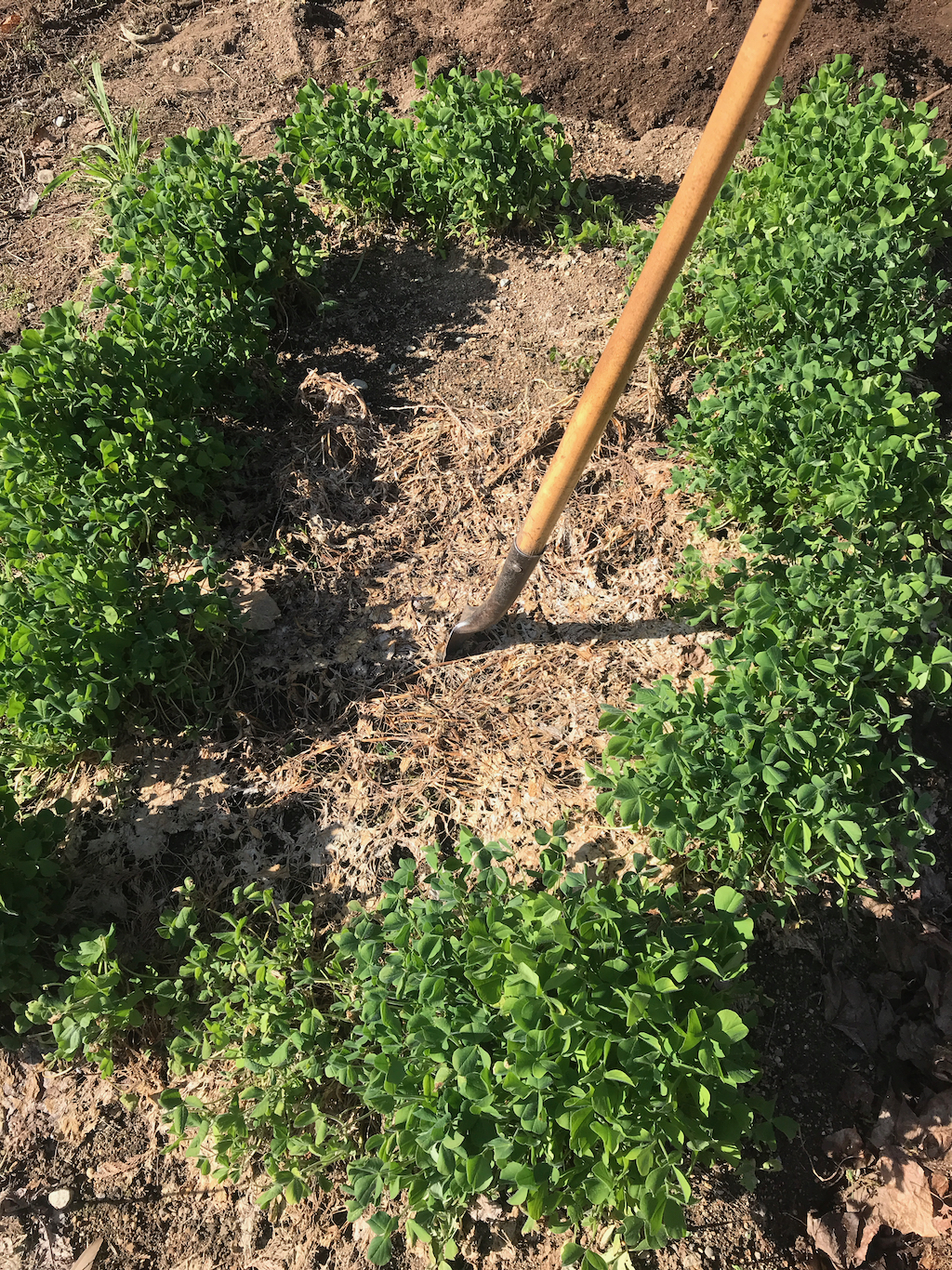 Push stroke advances the front edge forward to find a working grade. Pull back and advance again cracks hard packed soil. Use pry down at the end of push stroke to add leverage power to the soil breaking action.